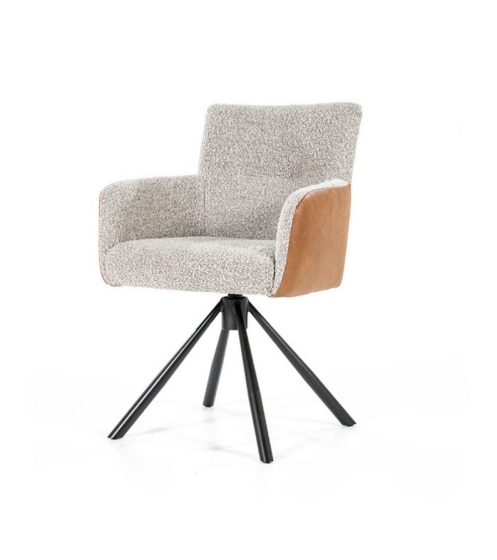 Chaise avec accoudoirs en simi et tissu bouclé orange