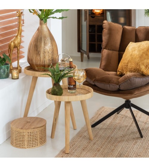 Optez pour RONDINE et amenez en un clin d'oeil de la nouveauté à votre intérieur. Cette perle rare trouvera facilement sa place à côté d'un beau canapé et s'associera sans problème avec un mobilier de style bohème. RONDINE possède un plateau en rotin de qualité ce qui lui procure une qualité remarquable, le tout pour un style hyper tendance. Associez RONDINE à la petite table en jacinthe SALINE pour bénéficier d'une décoration harmonieuse. Vous aurez là un bel espace à l'atmosphère chaleureuse. Vous allez adorer le rendu ! Au niveau de l'entretien, nous vous conseillons un chiffon. Dimensions :Hauteur : 54.5 cmLargeur : 51 cmProfondeur : 51 cmDiamètre : 51Forme : RondBon à savoir :Essence de bois : RotinEntretien : chiffon humidifiéMatière(s) principale(s) : Bois (rotin)Matière du plateau : Bois (rotin)Matière(s) des pieds : BoisMontage : NonStyle : Bohème