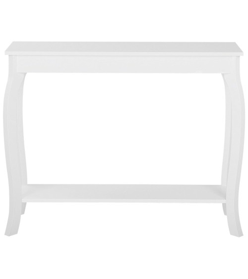 Table console blanche. Cette table console blanche du style moderne rehaussera un look de votre couloir ou de toute autre pièce. Grâce à ses dimensions compactes, la console peut être utilisée comme table d'entrée, tout en vous offrant une surface de décoration supplémentaire pour des bougies, des vases et des bibelots. En plus, une étagère vous permettra de ranger parfaitement vos affaires même dans un petit appartement. Détails: Type de produit: Table d'entrée Style: Scandinave Couleur principale: Blanc Type de matière: Bois d'ingénierie Matière principale: MDF Matière du piétement: Bois d'ingénierie Matière du plateau: Bois d'ingénierie Tiroirs: Non Finition: Laqué Étagères: Oui Dimensions: Profondeur: 31 cm Largeur: 100 cm Hauteur: 80 cm Poids: 12 kg Charge admise du plateau: 10 kg L`offre inclue: 1 x Console Caractéristiques clés: Étagère ouverte, facilement accessible, Décoratif et fonctionnel, Style élégant, Construction durable et stable, Facile à entretenir Informations d`assemblage: À assembler entièrement. 20 - 40 min Conseils de maintenance: MDF: 1.Nettoyez avec un chiffon et un détergent doux. Essuyez bien après le nettoyage.