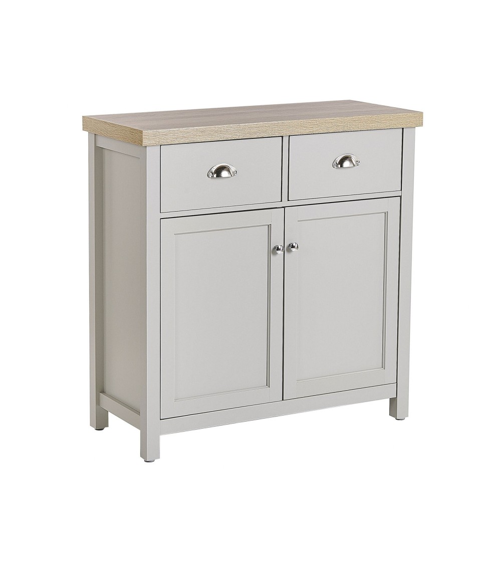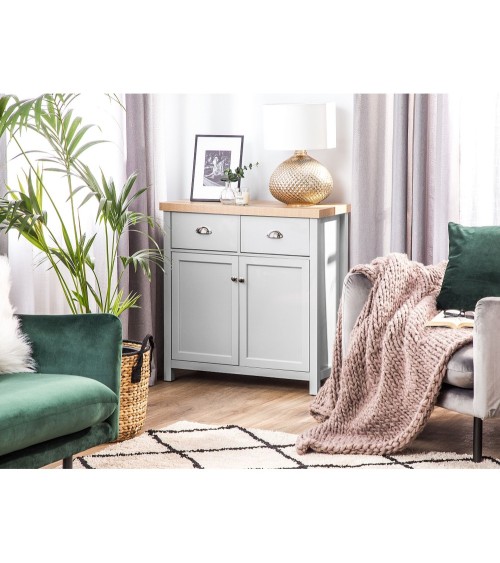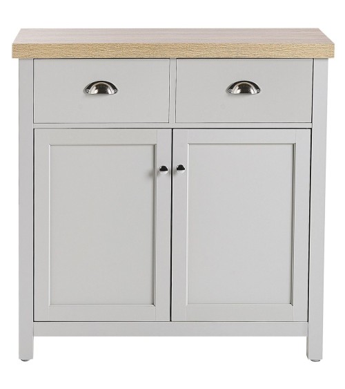 Buffet au style vintage avec 2 tiroirs et compartiment à portes. Organisez vos objets quotidiens avec ce buffet fonctionnel et élégant. Doté de deux tiroirs spacieux et de deux étagères cachées, ce buffet offre beaucoup d'espace pour ranger vos livres, câbles et documents préférés. Avec son plateau effet bois et sa peinture mate tendance, cette pièce s'intègre parfaitement dans tout salon moderne, contemporain ou transitionnel.Détails: Type de produit: Buffet Style: Traditionnel Couleur principale: Gris Type de matière: Bois d'ingénierie Matière principale: Panneau de particules Matière secondaire: MDF Matière du piétement: Bois d'ingénierie Matière du plateau: Bois d'ingénierie Tiroirs: Oui Finition: Plaqué Patins pour pieds: Oui Nombre de portes: 2 Nombre de tiroirs: 2 Étagères: Oui Dimensions: Profondeur: 35 cm Largeur: 79 cm Hauteur: 82 cm Poids: 23 kg Charge maximum du tiroir: 5 kg Charge maximum de l`étagère:: 5 kg Charge admise du plateau: 10 kg L`offre inclue: 1 x Meuble de rangement Caractéristiques clés: Tiroirs pratiques et ouvertures avec mécanisme stable, S'adapte à différents types d'intérieurs, Matières de haute qualité, Facile à entretenir, Espace de rangement fonctionnel Informations d`assemblage: À assembler entièrement. plus de 60 min Informations supplémentaires: Veuillez noter que pour des raisons de sécurité, le produit doit être fixé au mur. Les fixations nécessaires sont incluses dans l'offre. Conseils de maintenance: Panneau de particules: 1.Nettoyez avec un chiffon et un détergent doux. Essuyez bien après le nettoyage.