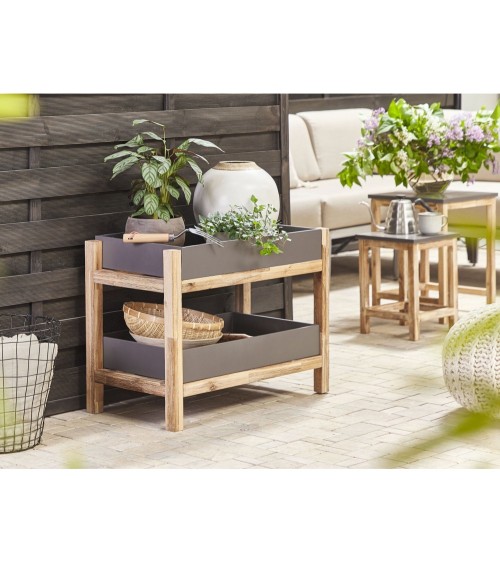 Que ce soit à l'intérieur ou à l'extérieur, cette petite étagère sera un accent accrocheur dans n'importe quel endroit. Dotée de 2 plateaux de rangement amovibles en fibre-ciment robuste, elle offre look effet béton inspiré par le style industriel. La structure en bois d'acacia complète parfaitement le gris avec sa finition claire et naturelle. Ce petit meuble de rangement offre beaucoup d'espace pour vos plantes, objets de décoration ou accessoires de jardin préférés.