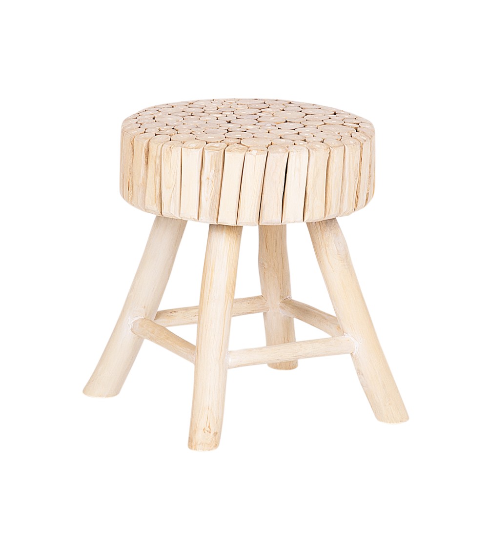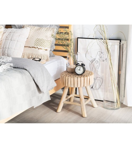 Petit tabouret multifonction en bois au style rustique. Si vous aimez les meubles bruts inspirés de la nature, ce petit tabouret est un ajustement parfait. Doté d'un plateau en rondin de bois clair, il est à la fois décoratif et fonctionnel. Cette pièce est multifonctionnelle et peut également bien servir comme table d'appoint, de chevet ou repose-pieds.Détails: Type de produit: Table d'appoint Style: Boho Couleur principale: Bois clair Type de matière: Bois solide Matière principale: Teck Matière du piétement: Bois solide Matière du plateau: Bois solide Tiroirs: Non Finition: Mat Patins pour pieds: Non Étagères: Non Dimensions: Profondeur: 35 cm Largeur: 35 cm Hauteur: 40 cm Poids: 5 kg Charge admise du plateau: 75 kg L`offre inclue: 1 x Table de chevet Caractéristiques clés: S'adapte à différents types d'intérieurs, Matières de haute qualité, Facile à entretenir et extrêmement durable, Multifonctionnel, Structure stable et durable Informations d`assemblage: Ne nécessite pas d'assemblage Conseils de maintenance: Teck: 1.Essuyez immédiatement après le nettoyage pour empêcher l'eau de s'accumuler sur les meubles 2.Nettoyez avec un chiffon et un nettoyant doux dans le sens du grain du bois 3.De temps en temps, il est conseillé de mettre une nouvelle couche d'huile sur les meubles avec une finition huilée.