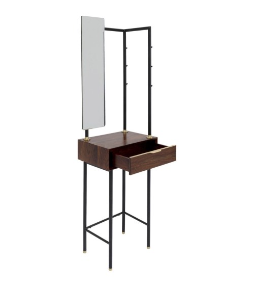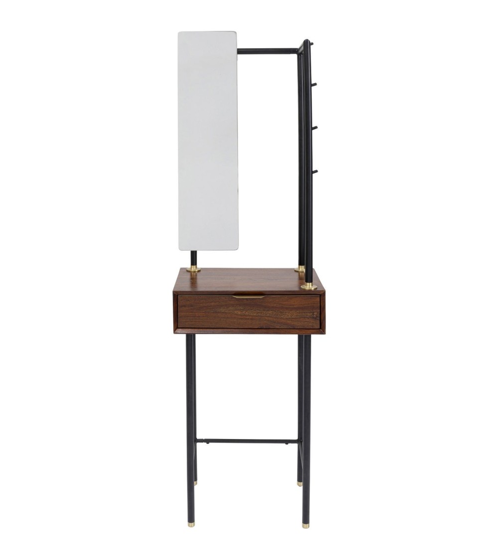 Coiffeuse 1 tiroir avec miroir en sheesham massif et acier