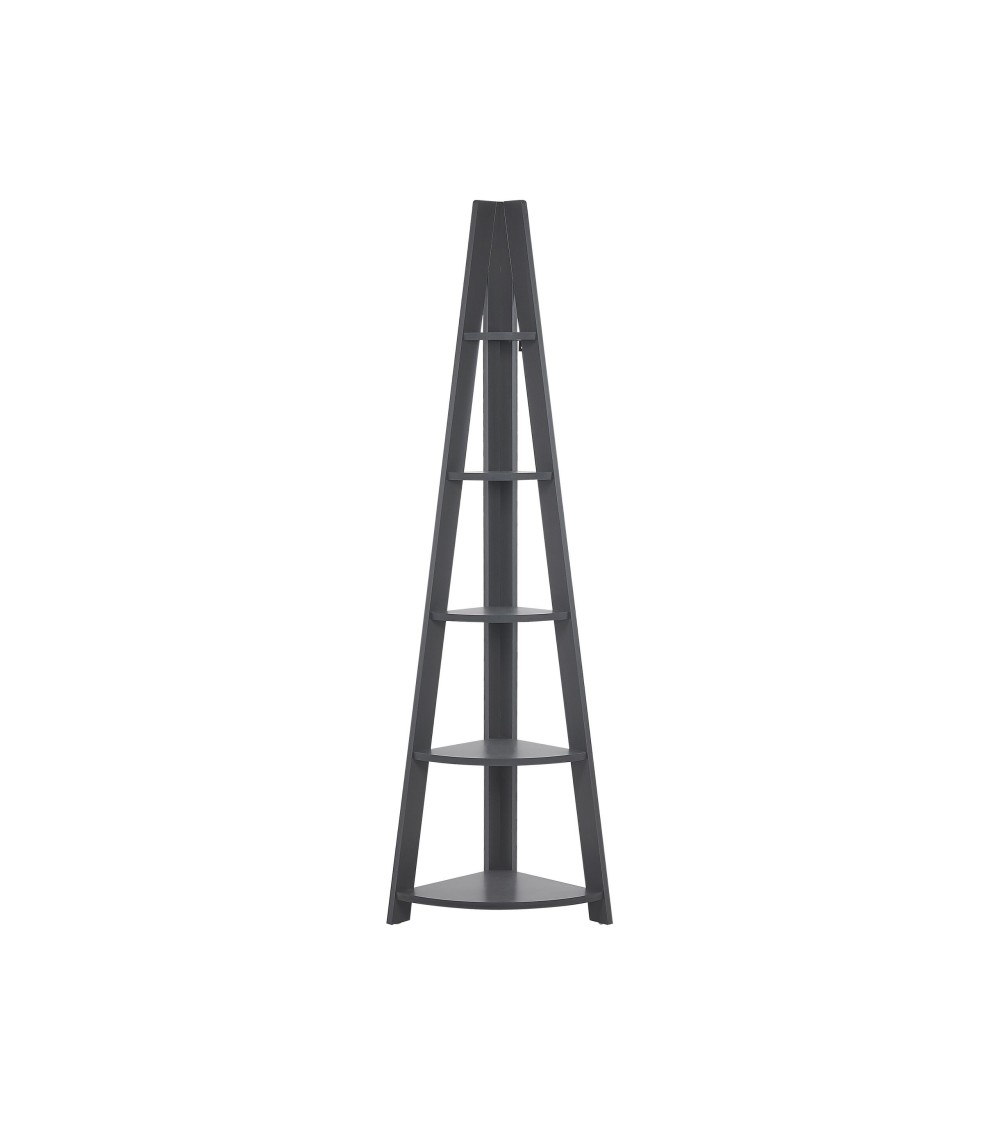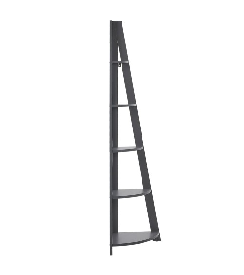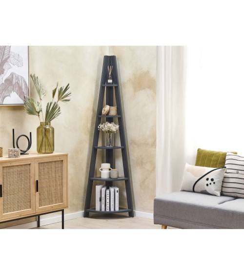 Étagère d'angle 5 niveaux en MDF. Cette étagère d'angle grise en forme d'échelle est un meuble petit mais excellent et pratique pour un bureau ou un salon. Elle se compose de 3 entretoises longitudinales qui sont disposées obliquement les unes aux autres. En conséquence, l'étagère est étroite au sommet et est plus large en dessous. Elle dispose de 5 plateaux arrondis qui offrent beaucoup despace et donnent de la clarté et un caractère ouvert. Vous pouvez les remplir de vos titres préférés et d'accessoires décoratifs, en créant une composition visuelle charmante.Détails: Type de produit: Bibliothèque Style: Moderne Couleur principale: Gris Type de matière: Bois d'ingénierie Matière principale: Panneau de particules de bois Matière du piétement: Bois d'ingénierie Nombre d`étagères: 5 Finition: Laminé Dimensions: Profondeur: 35 cm Largeur: 49 cm Hauteur: 175 cm Poids: 12 kg Charge maximum de l`étagère:: 10 kg Charge admise du plateau: 10 kg L`offre inclue: 1 x Etagère Caractéristiques clés: Étagère pratique, parfaite pour entreposer des bibelots, S'adapte à différents types d'intérieurs, Style minimaliste, De haute qualité, Facile à entretenir et extrêmement durable Informations d`assemblage: À assembler entièrement. 20 - 40 min Informations supplémentaires: Veuillez noter que pour des raisons de sécurité, le produit doit être fixé au mur. Les fixations nécessaires sont incluses dans l'offre. Conseils de maintenance: Panneau de particules de bois: 1.Nettoyez avec un chiffon et un détergent doux. Essuyez bien après le nettoyage.