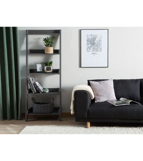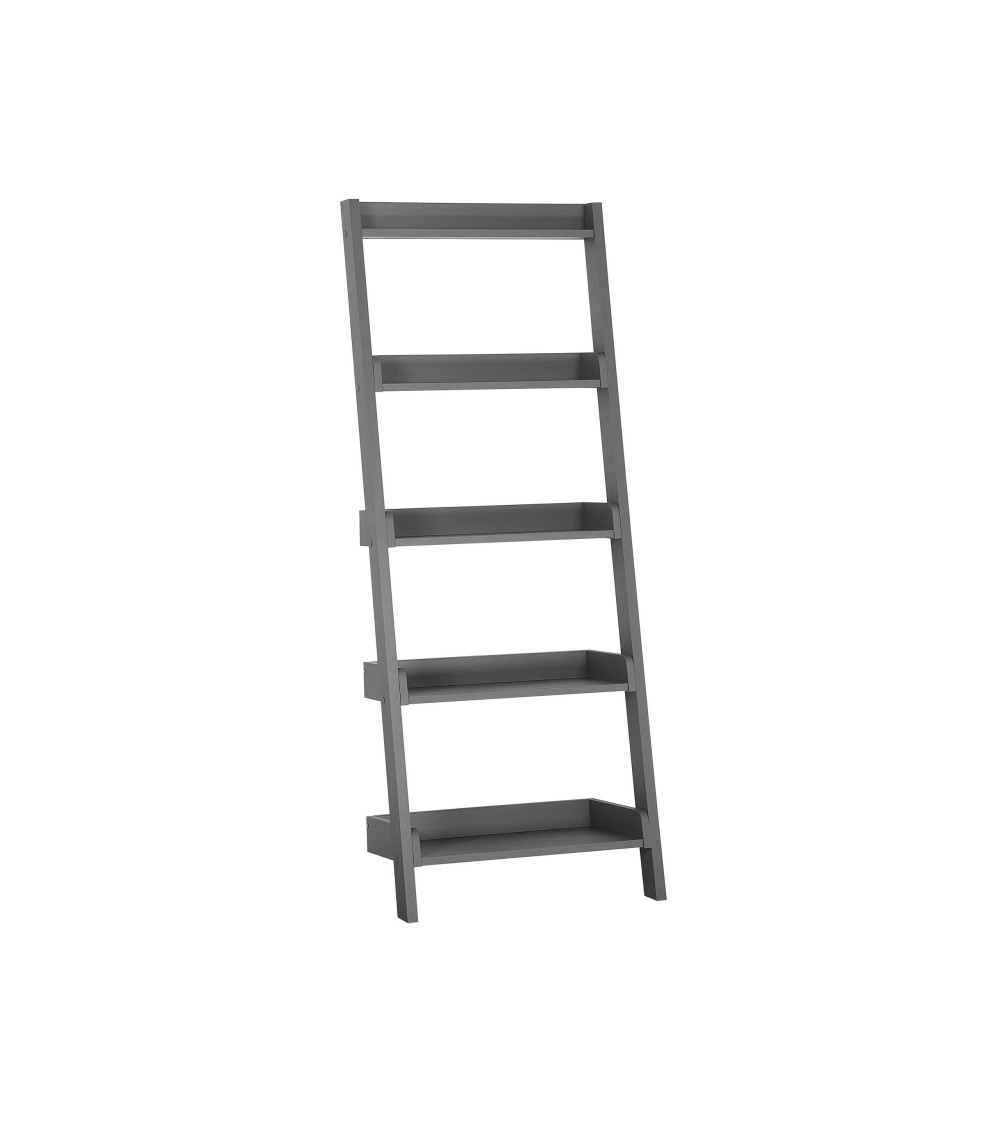 Étagère échelle 5 niveaux en MDF. Cette étagère grise en forme d'échelle est un meuble petit mais excellent et pratique pour un bureau ou un salon. Elle dispose de 5 plateaux de taille différentes qui donnent de la clarté et un caractère ouvert. Vous pouvez les remplir de vos titres préférés et d'accessoires décoratifs, en créant une composition visuelle charmante.Détails: Type de produit: Bibliothèque Style: Moderne Couleur principale: Gris Type de matière: Bois d'ingénierie Matière principale: MDF Matière du piétement: Bois d'ingénierie Nombre d`étagères: 5 Finition: Plaqué en bois Dimensions: Profondeur: 32 cm Largeur: 65 cm Hauteur: 164 cm Poids: 18 kg Charge maximum de l`étagère:: 11 kg Charge admise du plateau: 2 kg L`offre inclue: 1 x Etagère Caractéristiques clés: Étagère pratique, parfaite pour entreposer des bibelots, S'adapte à différents types d'intérieurs, Style minimaliste, De haute qualité, Facile à entretenir et extrêmement durable Informations d`assemblage: À assembler entièrement. 45 - 60 min Informations supplémentaires: Veuillez noter que pour des raisons de sécurité, le produit doit être fixé au mur. Les fixations nécessaires sont incluses dans l'offre. Conseils de maintenance: MDF: 1.Nettoyez avec un chiffon et un détergent doux. Essuyez bien après le nettoyage.