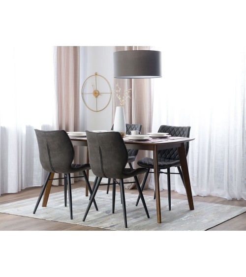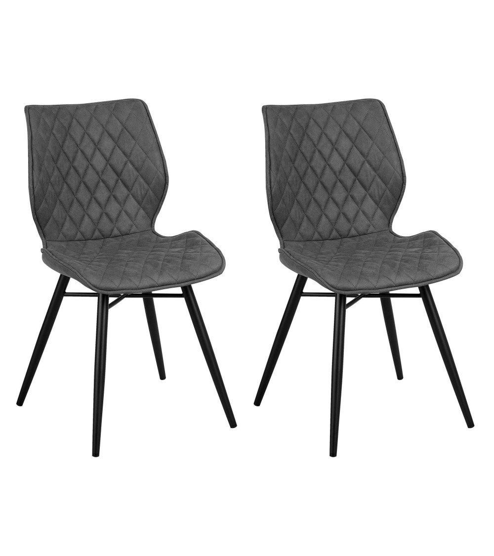 Avec des sièges profilés et un motif en losanges, ces chaises gris foncé compléteront parfaitement votre salle à manger. Le revêtement en tissu de haute qualité, lassise rembourrée et les pieds en métal inclinés offrent une assise confortable. La combinaison du design moderne et vintage permet d'intégrer facilement les chaises à différents styles, tant au style transitionnel quà celui du milieu du siècle.