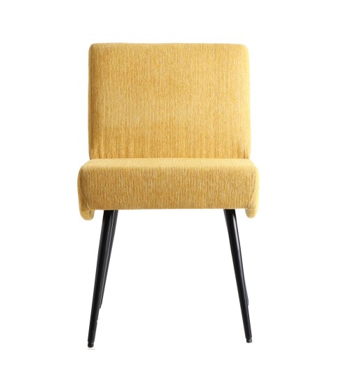 Élégante et exclusive ! Voilà ce qui décrit notre chaise de salle à manger ou de cuisine Lavoria, fabriquée en acier avec une assise tapissée en chenille de couleur moutarde. La douceur de son tissu est très confortable et agréable au toucher. Cest un article à la forme et au style exclusif. Elle sintégrera parfaitement quel que soit la pièce dans laquelle elle se trouvera, que ce soit le salon, la salle à manger, lentrée, la cuisine... Dimensions : 48X58X76 cm.