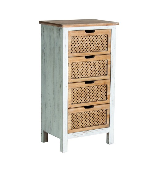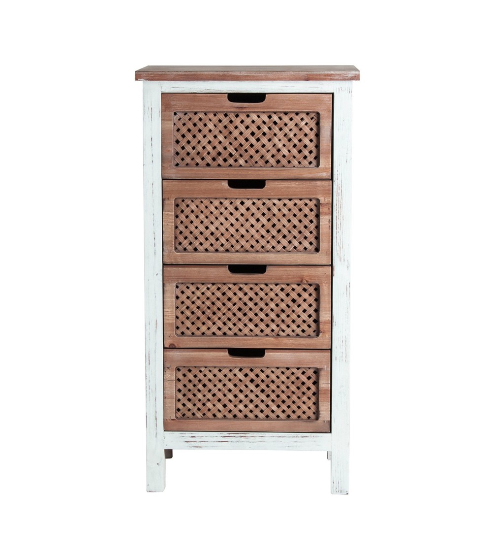 Le chiffonnier Zael, de style provençal, va apporter de la chaleur aux chambres à coucher. Fabriqué en bois de sapin et en , il alterne la couleur naturelle du bois des tiroirs avec une teinte blanche décapée pour le corps du meuble. C'est un meuble accueillant et pratique dans nimporte quelle chambre. Sa taille est de 48x35x94 cm.