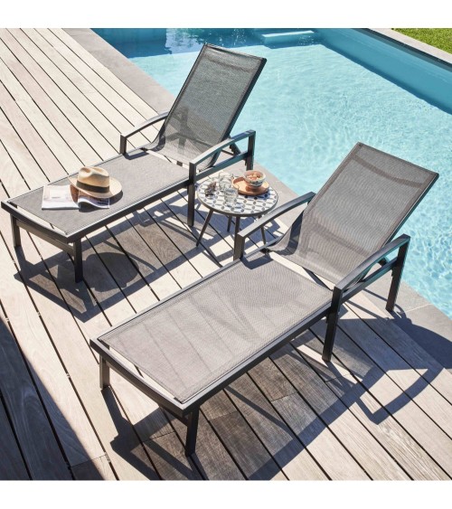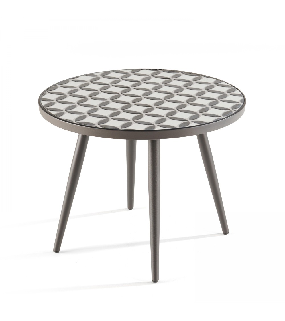 Table basse ronde de jardin en acier gris plateau en céramique