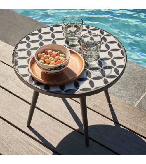 Vous êtes à la recherche d'une petite table basse à placer entre deux transats de jardin ou pour décorer votre jardin, votre terrasse. Vous pouvez opter pour la table basse motif Mosaic. Faisant partie de la collection TIVOLI, elle a une structure en acier thermolaqué de couleur noire. Elle est ainsi très robuste. Vous souhaitez vous adonner à des activités ludiques avec vos enfants, cette table est votre meilleur allié. D'un diamètre de 45 cm et d'une hauteur de 35 cm, chacun sera à son aise. Son plateau rond à motif et ses pieds inclinés vous promettent des moments conviviaux. Il résistera à la chaleur estivale. Investir dans ce mobilier de jardin est une bonne idée dans la mesure où il vous durera dans le temps. Traité anti corrosif, il gardera toujours ce bel aspect pour vous permettre de profiter de votre espace extérieur quand vous voulez. Vous voulez créer un espace outdoor convivial ? Faites de cette table la pièce maitresse de votre décoration. Au milieu de votre salon de jardin, au bord de la piscine, elle trouvera sa place. Même sur votre balcon de quelques m², elle fera son petit effet. Mention spéciale pour ceux qui ont opté pour une décoration style industriel. Description de la table basse motif MOSAIC Matière : Structure en acier thermolaqué finition époxy satiné Peinture anti U.V avec finition traitement anti corrosif Plateau en céramique à motif Caractéristiques : Plateau rond ultra robuste à motif et pieds inclinés Diamètre 45 cm x hauteur 35 cm Structure noir