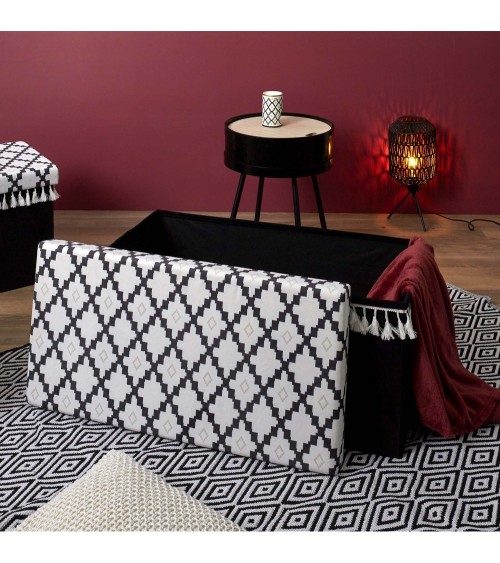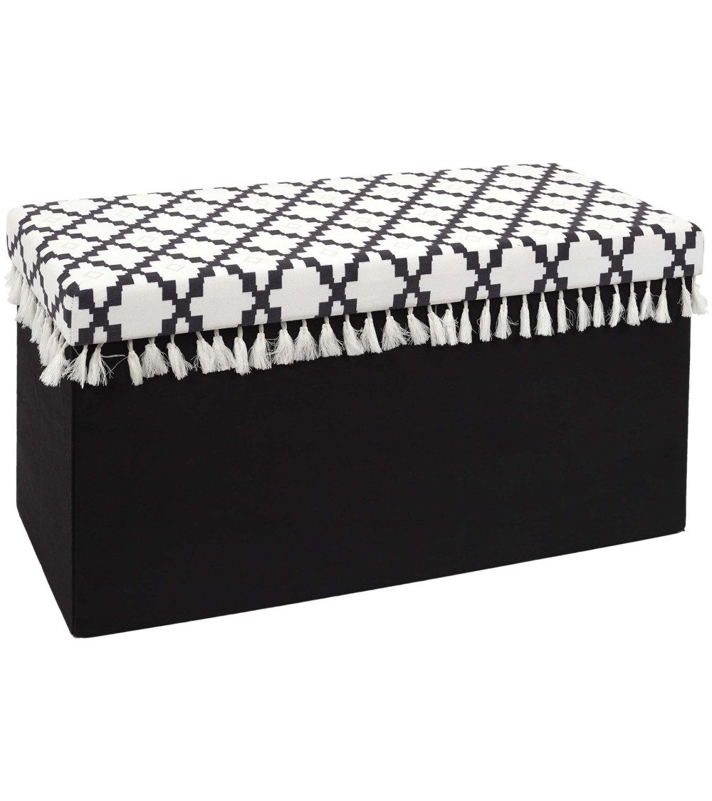 Banc coffre noir pliable couvercle à motifs pampilles mirage