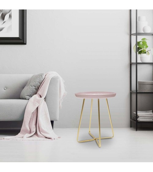 Aspect : Coloris : RoseMatériau principal : Acier inoxydableMatériaux secondaires : PlastiqueDimensions : Diamètre (en cm) : 40Hauteur (en cm) : 48,50Autres caractéristiques : Poids (en kg) : 1,80 Table d'appoint plateau rond glossy