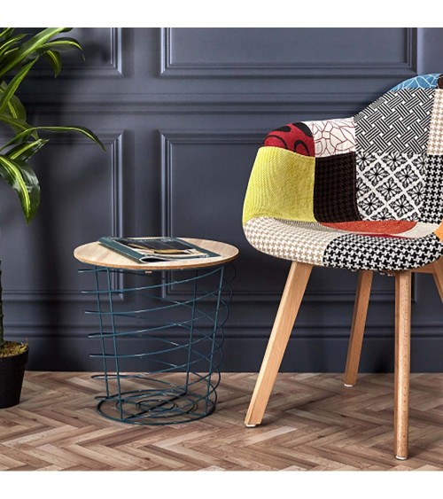 Table d'appoint filaire en bois et métal cyclone bleu paon