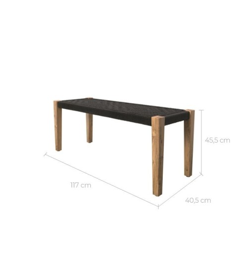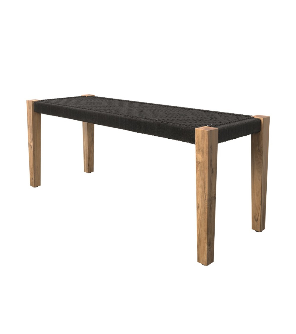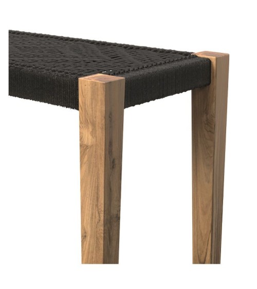 Banc en bois et corde tressée noire
