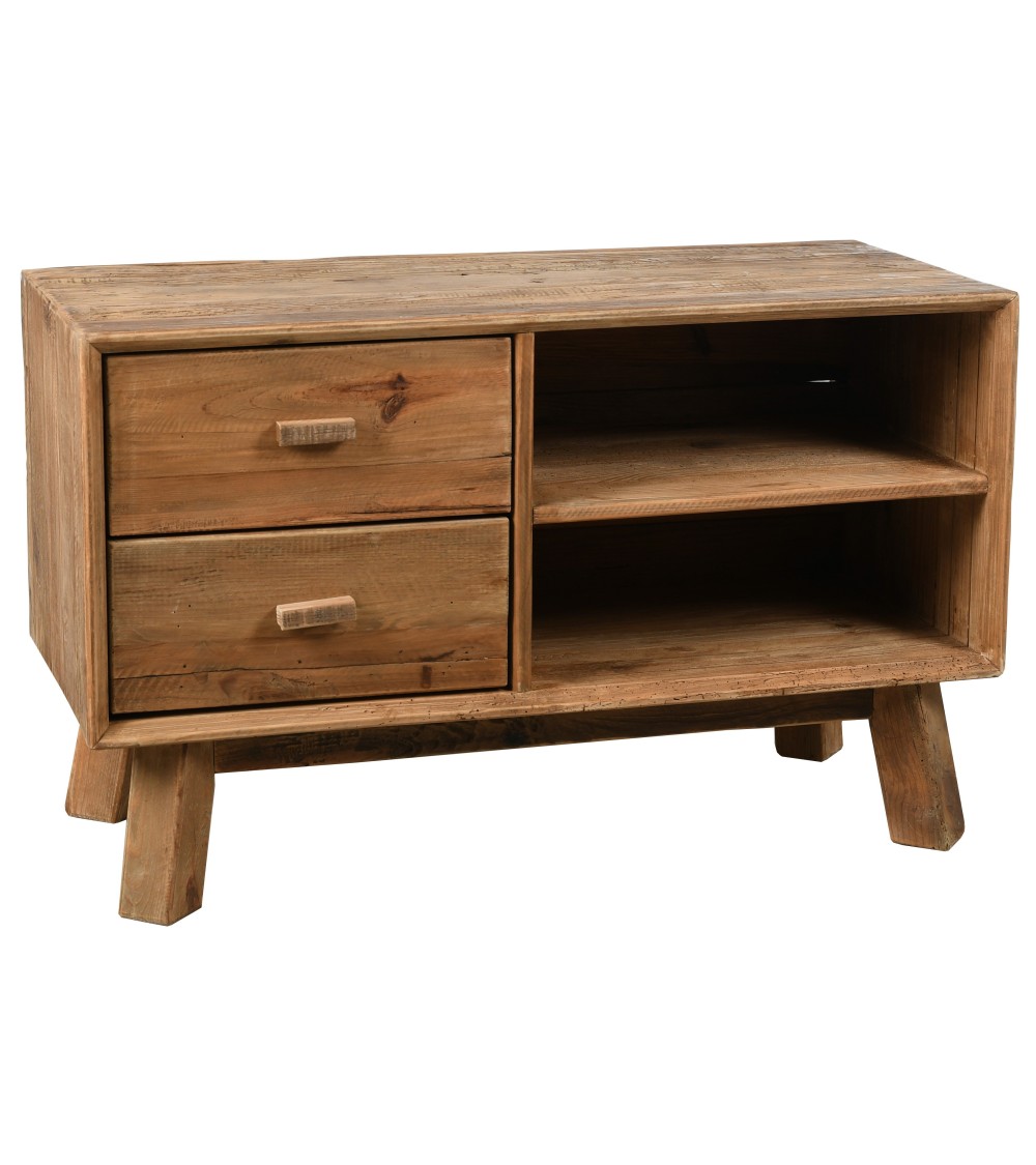 Aspect : Matériau principal : Pin recycléDimensions : Hauteur (en cm) : 55,00Longueur (en cm) : 90,00Profondeur (en cm) : 40,00Autres caractéristiques : Informations complémentaires : 2 attaches de fixation à l'arrièreLivré en kit : OuiPoids (en kg) : 25 Meuble tv en pin recyclé