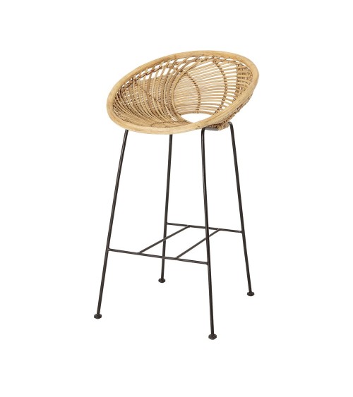 Le tabouret de bar Yonne est toujours un excellent spot pour s'asseoir. Vous pouvez l'installer dans le coin bar ou autour de l'îlot central de votre cuisine. Le cadre en métal comporte 4 pieds évasés. Ils sont reliés par 2 petites barres métalliques à l'avant et à l'arrière. Le tout est renforcé par 2 autres barres. De quoi servir de repose-pied solide. Le siège en rotin a un design complexe qui fait sa particularité. La fibre naturelle est tissée à la main. Du coup, vous pouvez être sûr que chaque pièce est unique et porte la patte de son artisan. Le mélange des matières en fait une pièce polyvalente qui ira parfaitement dans un intérieur d'inspiration industrielle ou encore d'inspiration plus côtière. Passez juste un chiffon humide pour nettoyer votre tabouret de bar Yonne.