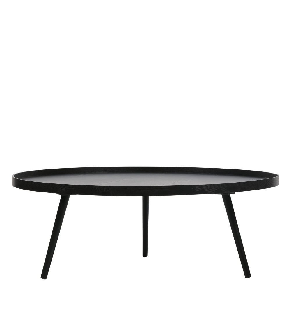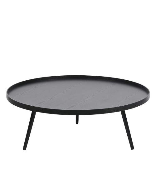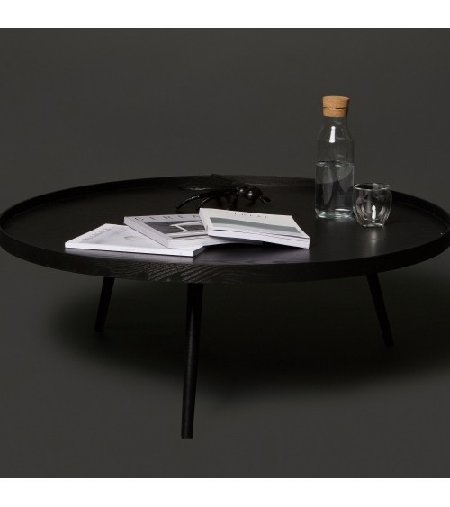 Un vrai disque d'ébène ! La table basse Mesa de Woood s'installe en évidence dans le salon ou la bibliothèque. Ses dimensions font aussi dans le spectaculaire : sur trois pieds s'élevant à une hauteur de 36 cm se pose un disque de 100 cm de diamètre tout rond. Un beau plateau cerclé qui vous rendra bien des services au quotidien : prévoyez un copieux apéritif dinatoire entre amis sans craindre de surcharger la table, ou posez petite déco, bouquins et même tasse de thé sur cette table basse.Sécurisante, la bordure du plateau vous évitera que les verres ou vases se renversent sur le sol. Ses trois pieds lui assurent quant à eux un équilibre parfait et un design contemporain assumé.Les pieds de la table basse Mesa de Woood ont été conçus en bois de pin et son plateau en MDF. L'ensemble a été teint dans un coloris noir. Cette nuance sombre, synonyme de chic décomplexé, remplit ici totalement son rôle. Ce meuble pas si classique est destiné à se fondre dans tous les styles de pièces : quelle plus belle manière d'adoucir les angles dans un salon au mobilier trop anguleux que cette table-disque ?