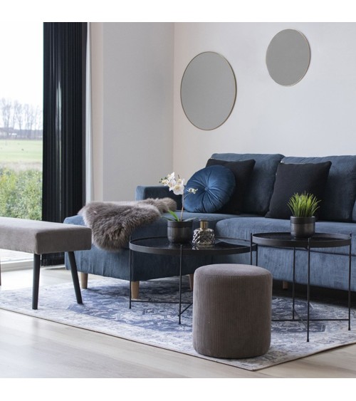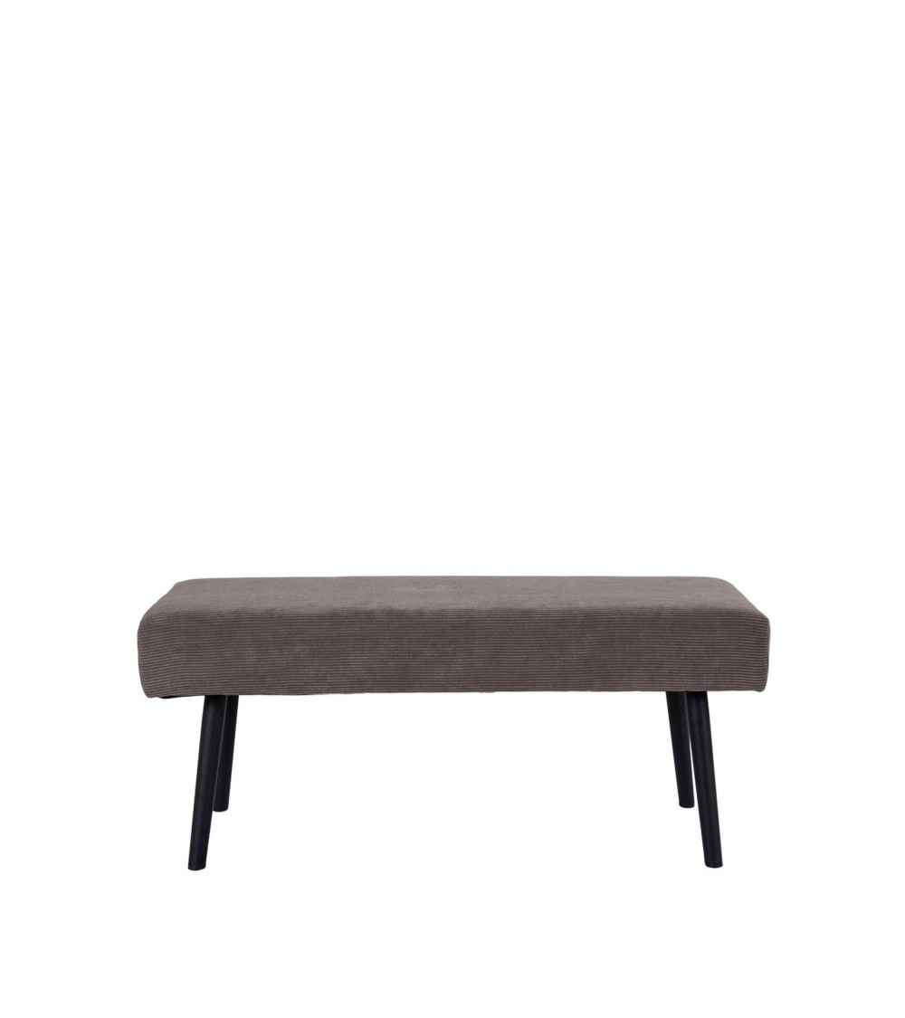 Le banc Skiby vous offre d'abord le plaisir de son beau revêtement en velours côtelé, tellement tendance ! Proposé dans une belle gamme de coloris tout aussi tendances, il y a fort à parier qu'il restera longtemps un indispensable déco, tant il peut occuper de rôles à la fois : dans l'entrée, il se fait fonctionnel pour enfiler ses chaussures sans se baisser. Dans un couloir ou un coin de pièce à meubler, il offrira du rythme à votre décoration, avec un joli plaid ou un coussin dessus. Au salon, il offrira des places assises supplémentaires pour recevoir du monde autour de la table basse. Dans la chambre, c'est en bout de lit qu'il se plaira tout aussi bien ! Confortable et rembourré, il offre de belles dimensions, avec une assise ni trop encombrante ni trop étroite, et un revêtement en velours capitonné qui a du style. Tout en longueur, il est structuré par la forme compas de ses quatre fins pieds compas en métal noir qui signent une influence scandinave des plus modernes. Vous ne pourrez que le constater, le banc en velours Skiby sait se montrer utile et stylé en toutes circonstances !