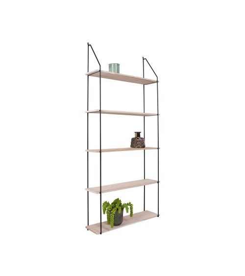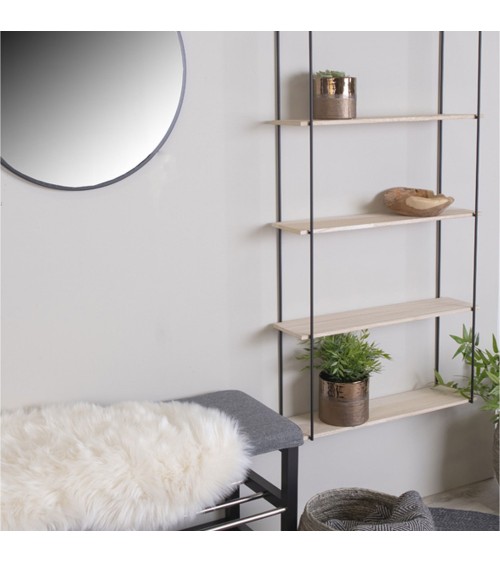 Etagère murale en métal et bois 65x17xH145 cm bois clair et noir