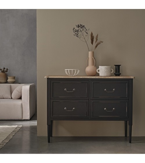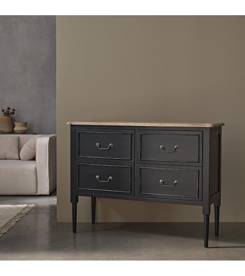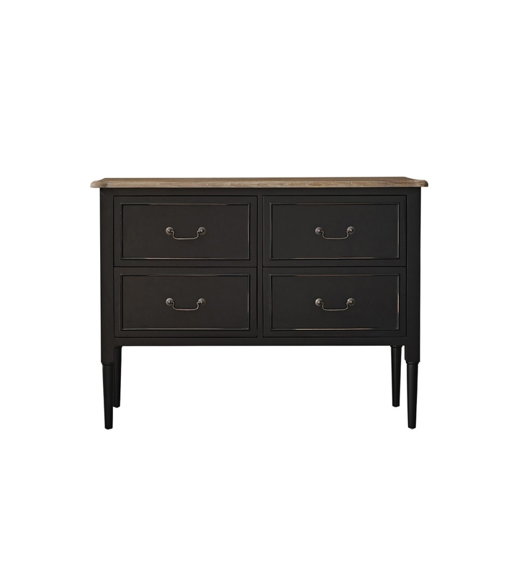 Cette commode en bois d'acajou 4 tiroirs assure un maximum de charme. Son bois de qualité, sa couleur noire et ses poignées travaillées apportent une touche unique à cette commode. Caractéristiques : Matière : Acajou - Couleur : Noir- Hauteur : 90 cm - Longueur : 120 cm - Profondeur : 40,5 cm - Poids : 41 kg - Garantie : 5 ans - Montage : Livrée montée. Les + : bois d'acajou 4 tiroirs - charme rustique. Livraison : Au pas-de-porte ou au rez-de-chaussée, par un livreur du lundi au vendredi sur rendez-vous. Un sms vous sera envoyé pour choisir le jour de livraison, puis un second sms avant votre livraison pour vous indiquer un créneau horaire de 2h. Lors de la réception de votre commande, vous ne devez signer le bordereau de livraison qu'après avoir vérifié votre commande en présence du livreur.