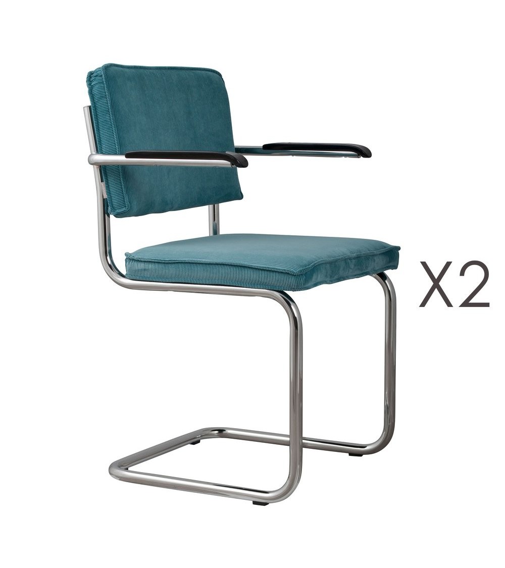 Envie de donner plus de diversité à votre mobilier, pensez à acheter ces chaises RIDGE. Très jolies, elles sont intéressantes dans en milieu moderne, contemporain ou Art Déco. On les voit aussi bien dans un décor minimaliste avec leurs lignes fines et tout en courbes. Le coloris bleu peut s'accorder avec les autres meubles, que ce soit le lit dans la chambre à coucher ou le canapé du salon. Le tissu des 2 chaises est composé de polyester et de coton. Passez vite votre commande et profitez de ces accessoires de qualité. Couleur : bleuMatière : dossier et assise en tissu 88% nylon et 12% polyester, accoudoirs en bakélite, cadre en acierDimensions (Lxlxh) : 60 x 48 x 85 cmHauteur d'assise: 48 cmHauteur de l'accoudoir: 68.5 cmPoids d'une chaise : 7.40 kgCharge maximale supportée : 120 kgLivré monté