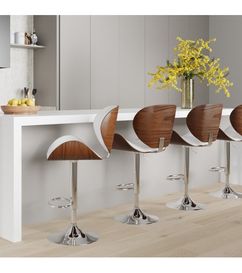 Chaise de bar réglable 63/84 cm en cuir synthétique blanc