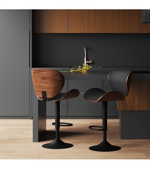 Chaise de bar réglable 63/84 cm en cuir synthétique noir