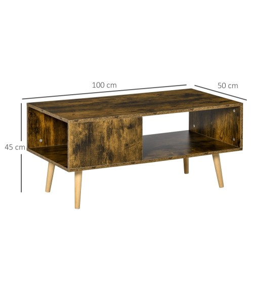Le style Vintage industriel de cette table basse rectangulaire rendra votre salon plus raffiné et plus élégant. Ce meuble vous permet de ranger plus facilement vos affaires grâce à ses 2 niches. La structure en panneaux de particules et en bois de peuplier confère une certaine solidité à la table pour un usage pérenne en tout confort.Caractéristiques :- Table basse rectangulaire de style Vintage industriel très élégant- Apportera une touche de style loft New-yorkais à votre salon grâce à sa mixité des matériaux : bois de peuplier (piètement) et aspect vieux bois veinage- Equipée d'un grand plateau et d'un bel espace de rangement divisé en 2 niches- Fabriquée en panneaux de particules (structure) et bois de peuplier (piètement) formant un ensemble robuste- Surface en mélaminé aspect vieux bois avec veinage facile à entretenir- Patins antidérapants : stabilité optimale- Manuel d'instructions illustrées fourni : montage facile et rapideSpécifications :- Couleurs principales : marron aspect vieux bois avec veinage- Matériaux principaux : panneaux de particules, bois de peuplier- Dim. totales : 100L x 50l x 45H cm- Dim. table : 100l x 50P cm- Dim. grande niche : 58L x 50l x 22H cm- Dim. niche latérale : 46L x 38l x 22H cm- Hauteur piètement : 17 cm- Charge max. recommandée : 30 Kg- Livraison effectuée en un colis- Réf. : 839-235BN