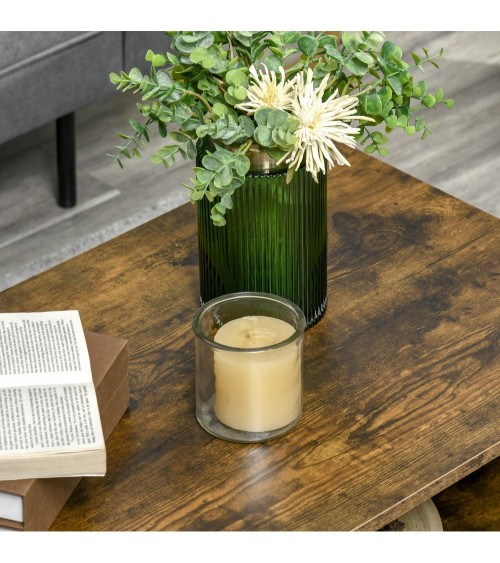 Table basse rectangulaire style industriel 2 niches aspect vieux bois