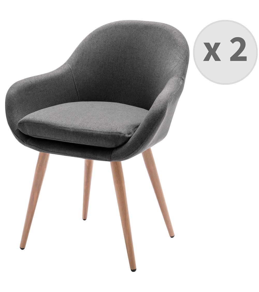 Chaise scandinave tissu gris pieds métal effet bois (x2)