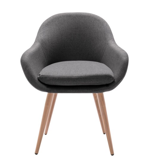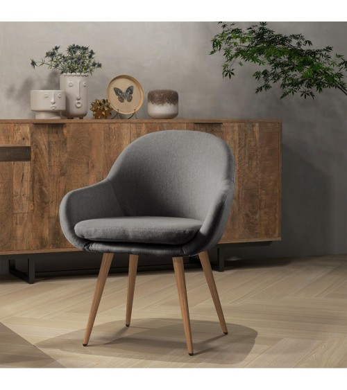 La chaise design et confortable comme un fauteuil Bien stable sur ses 4 pieds en métal aspect bois surmontés d'une large assise comprenant un coussin rembourré de mousse polyuréthane cette chaise est taillée pour le confort L'assise et le dossier sont d'une forme particulièrement agréable tel un fauteuil et qui assure un bon maintien Finition tissu gris elle est aussi déclinée en plusieurs coloris vous pourrez l'associer facilement à un large choix de table et dans tout type d'intérieur Garantie légale de conformité de 2 ans elle est livrée en 3-5 jours chez vous Paiement en plusieurs fois possible