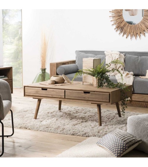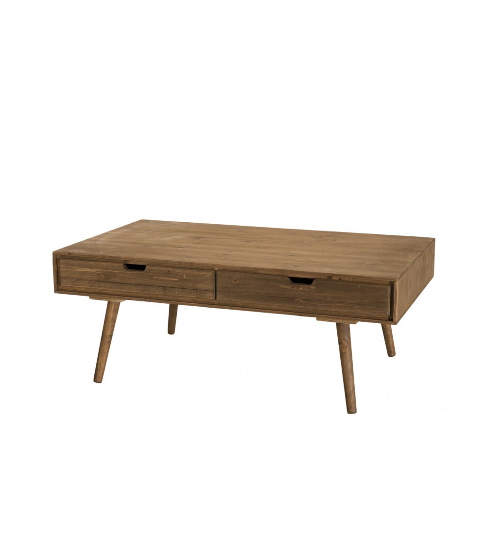 Table basse marron scandi rectangulaire 4 tiroirs bois Sapin. Dimensions : 120 x 70 x 47 cm. Article en Sapin et fonds de tiroirs en contreplaqué. Cette grande table basse en bois de sapin ciré apportera un côté chaleureux à votre pièce de vie et vous rapprochera de la nature grâce à son aspect cannelle vieillie. Ses nombreux tiroirs vous permettront d'organiser votre rangement de façon optimale au sein d'un séjour plein de vie. L'aspect brut de ce bois vous fera voyager au cur de la Scandinavie et s'accordera parfaitement avec votre décoration.