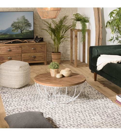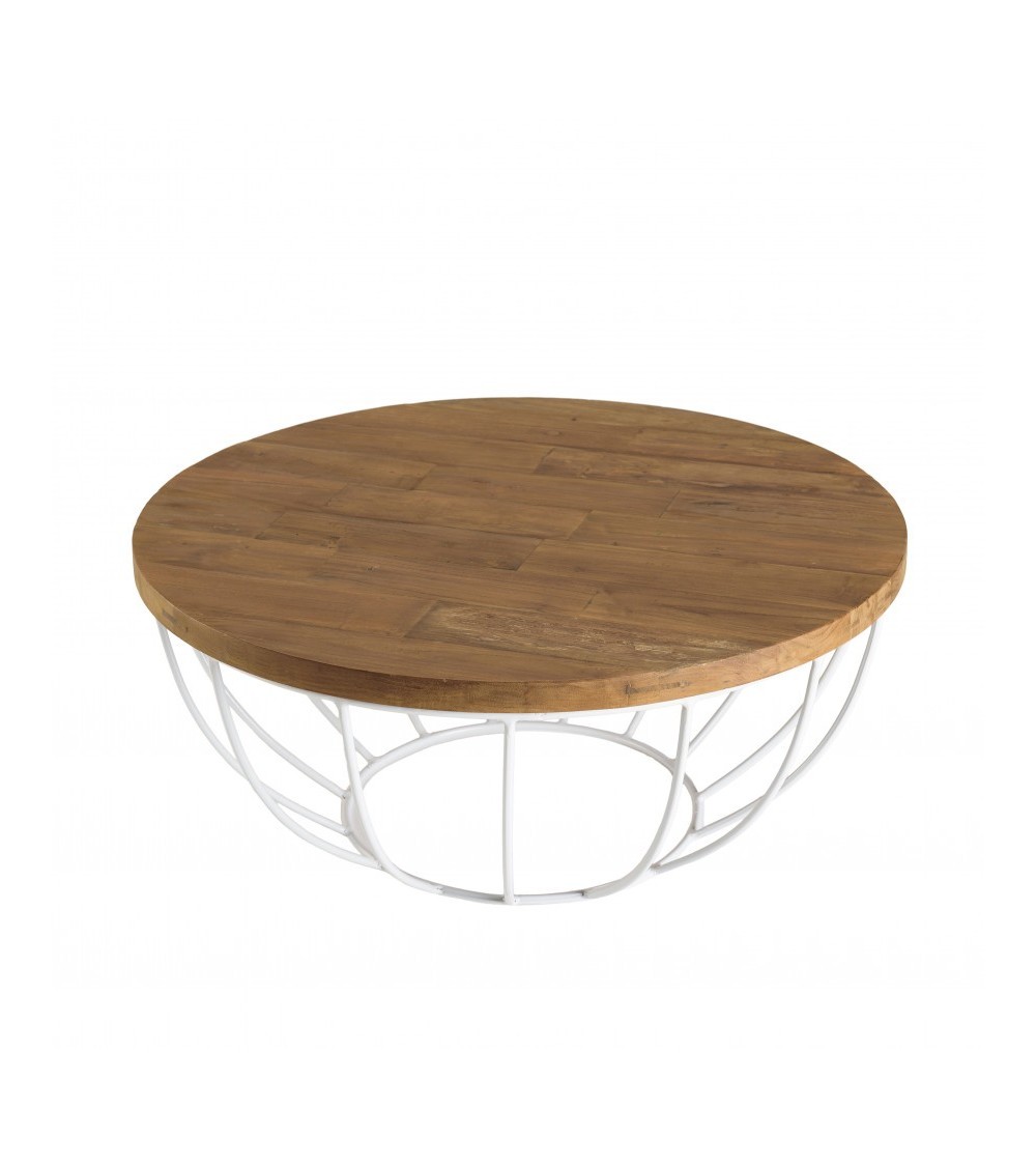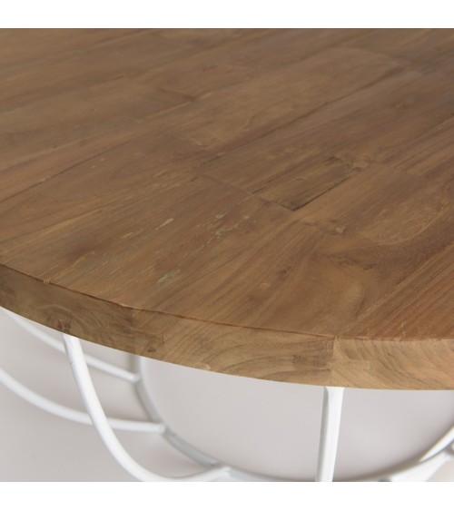Table basse coque ronde 80x80cm plateau teck recyclé piétement métal blanc. Dimensions : 80 x 80 x 35 cm. Article en Teck recyclé et Métal. Cet article est composé de bois recyclé ! Le bois recyclé est un bois récupéré de vieilles charpentes, de coques de bateaux ou tout bois de récupération ayant déjà eu une longue vie. C'est ce qui lui donne cet aspect vieilli et authentique avec ses imperfections qui font tout son charme. Acquérir du bois recyclé est une initiative écoresponsable qui permet de lutter contre la déforestation.