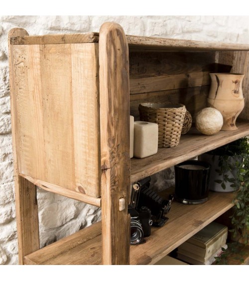 Étagère marron 5 niveaux bois Pin recyclé. Dimensions : 106 x 36 x 162 cm. Article en Pin recyclé. Cette splendide étagère en pin recyclé s'associera parfaitement avec votre décoration car elle est simple. Ses cinq niveaux attireront votre attention puisqu'elle ressemble à une bibliothèque. A la fois basique et travaillée, son bois en pin recyclé fait toute la différence et lui apporte un air authentique. Laissez cours à votre imagination pour créer une atmosphère agréable