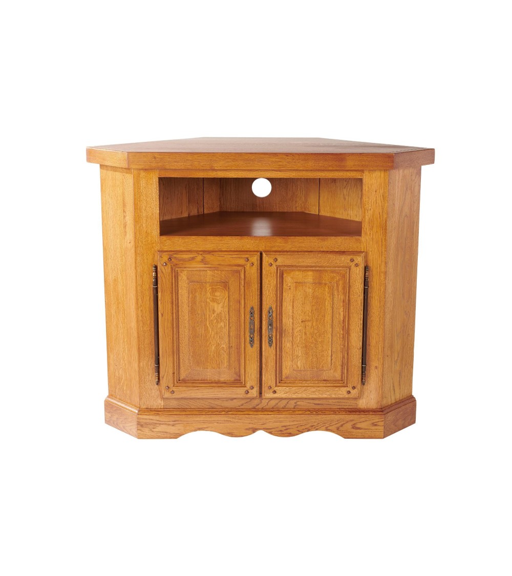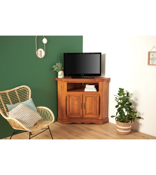 Ce meuble tv est avant tout un meuble de style et de tradition. Par sa conception, il libère l'espace et accueille discrètement tous vos équipements hifi et vidéo (box internet, lecteur DVD, console de jeux vidéo, câbles électriques, chaîne stéréo...). Un meuble tv d'angle assemblé de manière traditionnelleAssemblé selon les techniques traditionnelles, il est réalisé en 100% chêne. Compact, il est idéal pour aménager le salon avec élégance. Il convient à une pièce de style rustique, campagne chic ou épuré. Description technique : Meuble TV d'angle La Bresse en chêne massif issu des forêts durablement gérées Assemblé selon les techniques traditionnelles Finition chêne moyen réalisée à la main et application d'un vernis cellulosique afin de protéger d'avantage le meuble Passe-câble intégré à l'arrière du meuble Fermeture des portes à clé Dimensions : H : 96 x L : 112 x Profondeur : 51 cm Largeur façade : 82 cm / Largeur arrière : 42 cm Meuble livré monté en 1 seul colis. Dimensions du colis : L 114 x P 58 X H 98 cm...