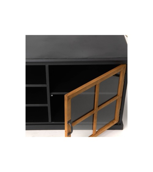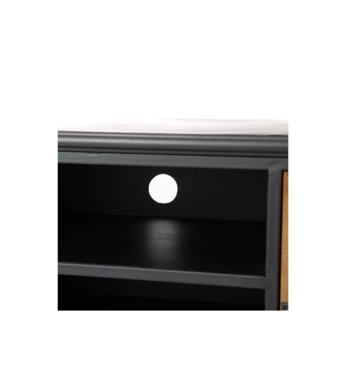 Laissez-vous séduire par l'esprit indus pour votre coin salon ! Adoptez le meuble TV ROBIN.Tout en métal, très résistant et durable, ce meuble TV dispose de deux espaces de rangement équipés d'une tablette et accessibles par de magnifiques portes vitrées, avec cadres en bois et poignés en métal. Au centre, ce meuble dispose de trois niches ouvertes dotées d'un passe câbles, parfaites pour accueillir vos équipements hifi et box.Prolongez ce style industriel chic jusqu'à votre salle à manger avec le buffet de la même collection (référence 156267). Description technique : Meuble TV en bois, structure en acier peinte en noire. Poids : 30 kg Livré monté en 1 colis Dimensions colis : L135xH52xP40 cmAvec passe câbles...