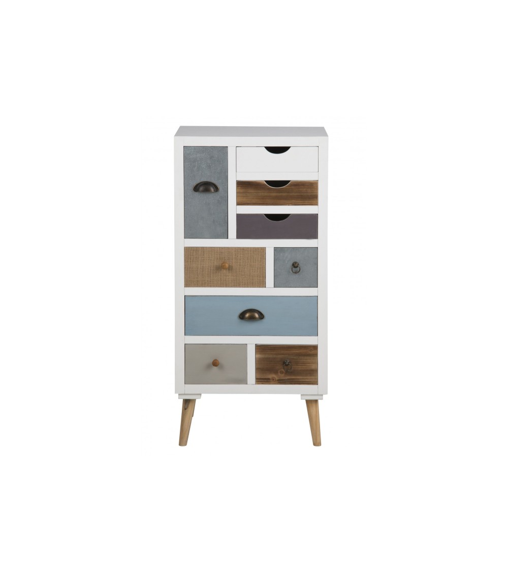 À placer dans un salon, une entrée ou même une chambre, ce meuble d'appoint est parfait pour ranger toutes vos affaires et décorer votre intérieur. Ses 9 tiroirs de tailles différentes offrent un espace de rangement important. Description technique : Corps en panneau alvéolaire, façade de tiroir et pieds ronds fuselés en pin, finition multiples.Dimensions : L: 48 x H: 98 x P: 32 cm.Livré monté / Pieds à visser.Poids net : 19 kgDimensions colis : 87 x 37 x 53 cmBois mix placage frêne et massifOrigine Hors Union Européenne Conçue dans le respect de l'environnement et conforme à la régulation Timber No 995/2010 de l'Union Européenne....