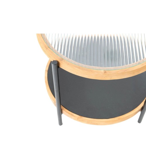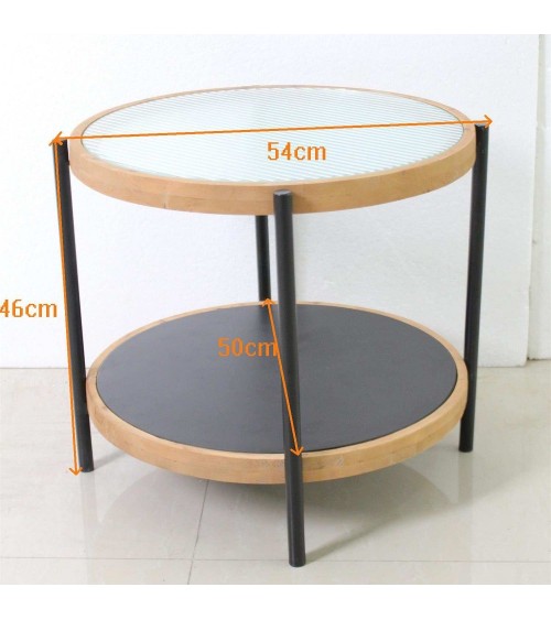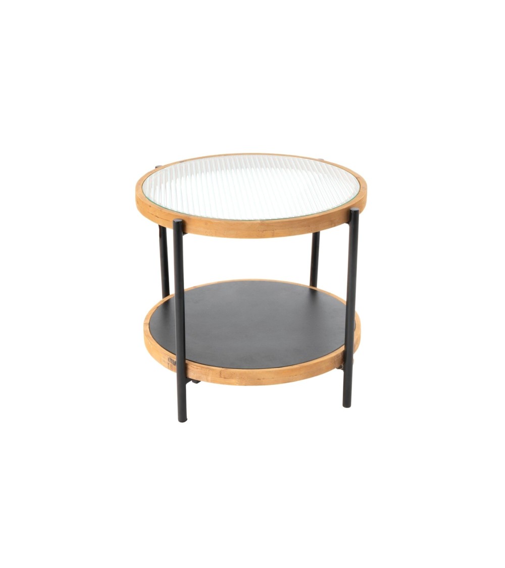 Très pratique et fonctionnel, le bout de canapé LEONCE prendra facilement place à côté de votre canapé. Son plateau en verre cannelé et cerclé en bois sera parfait pour poser une lampe et vos cadres. Disposant d'une tablette basse en métal cerclé aussi en bois, vous pourrez y déposer vos magazines de déco. Très pratique elle pourra occuper la fonction de table basse pour des salons aux dimensions plus exiguës. Le mélange des trois matières : bois, métal et verre donnent à cette table d'appoint un rôle décoratif pour votre salon industrielle chic et moderne. Description technique : Dimensions : D 54 x H 46 cmPoids: 6.4 KgMatières : verre, métal (fer) et pinA assembler...