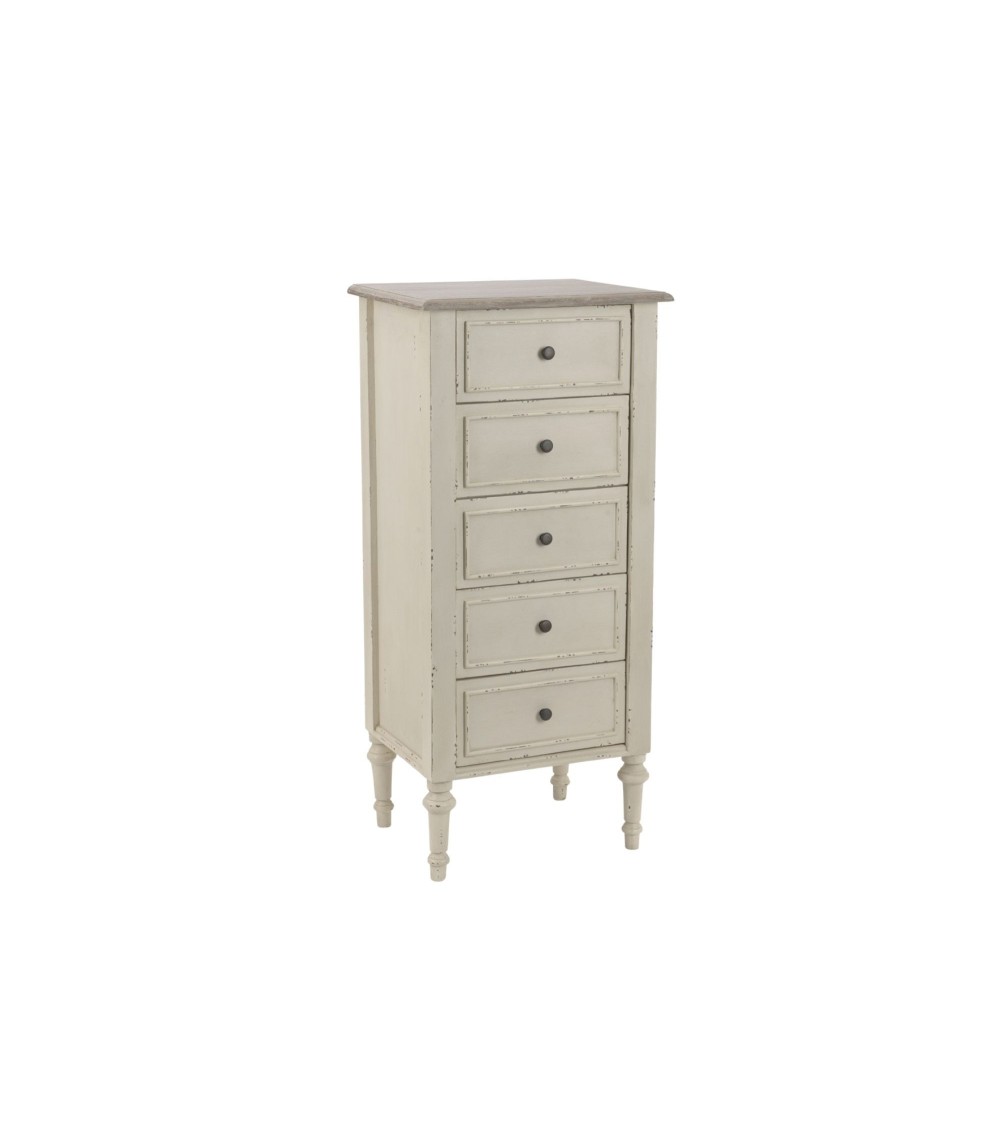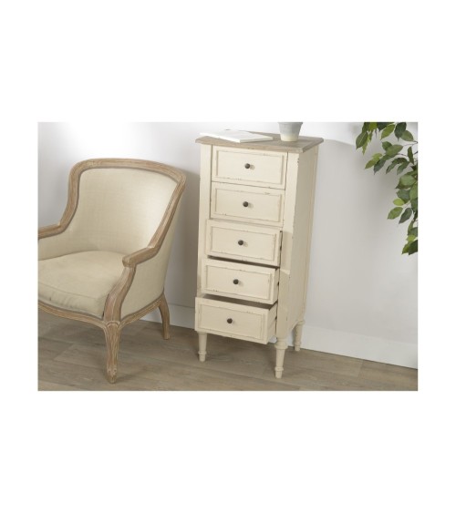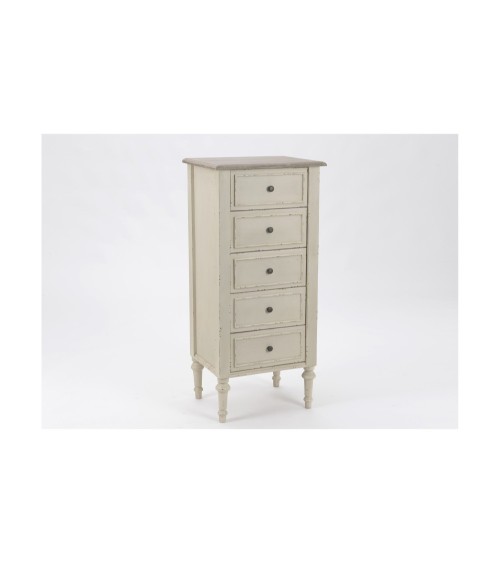 La commode de la gamme Neyla est très pratique pour ranger vos affaires grâce à ses 5 tiroirs.Elle présente un charme raffiné et élégant grâce à ses finitions en Patine et vernis Acrylique.Le chiffonnier trouvera sa place dans une chambre ou entrée pour donner un côté ancien et chic à votre intérieur. Description technique : Commode chiffonnier NeylaDimensions : L 50 x P 40 x H 110Hauteur des pieds : 20 cmHauteur des tiroirs : 16 cmCouleur : blancPoids 26 KgLivré monté...