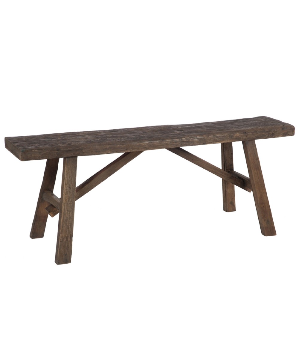Ajouter une touche rustique et authentique à votre décoration en choisissant ce banc en bois massif. Il saura s'associer à une déco de campagne, de chalet ou même industrielle. Sa structure en bois est très résistante. Description technique : Dimensions : L: 120 x P: 25 x H: 45 cmBois recycléLivré monté.Poids : 13 kg....