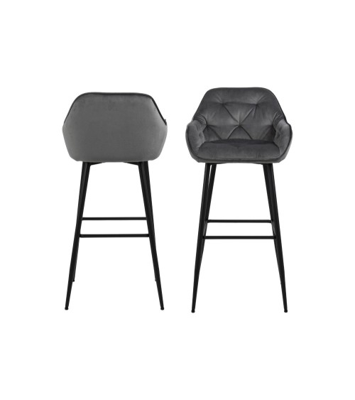 Tabouret haut avec accoudoirs en velours et métal (lot de 2)