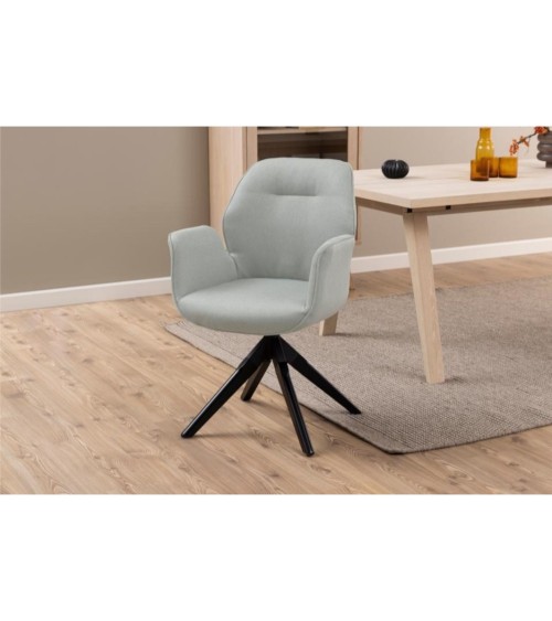 Ajoutez une note de modernité à votre coin bureau ou à votre salle à manger ! Très tendance, le fauteuil RUBEN repose sur un piétement en bois peint en noir, équipé d'un système pivotant et d'un ressort de retour automatique permettant la sortie de table ou de bureau sans effort.L'assise, équipée d'accoudoirs très design, est revêtue d'un tissu polyester gris clair ou gris anthracite. Les fauteuils RUBEN aux piétement noir, s'associent facilement aux décorations industrielles chic et contemporaines. Accordez ces fauteuils avec des meubles en bois clair et métal et le tour est joué pour un style sophistiqué et raffiné.Egalement disponible avec les pieds en chêne clair pour une ambiance scandinave et chaleureuse. Description technique : Chaise de salle à manger avec accoudoirs de style scandinaveDimensions : L 60,5 x P 58,5 x H 91 cmPoids : 12,5 KgHauteur d'assise : 51 cmLargeur d'assise : 61 cmProfondeur d'assise : 44 cmHauteur d'accoudoir : 10 cmHauteur de l'accoudoir par rapport au sol : 70 cmLargeur de l'accoudoir : 2 cmLongueur de l'accoudoir : 37 cmHauteur du dossier : 45 cmPoids maximal supporté : 110 KgHauteur des pieds : 37 cmParticularité : Retour automatiqueColoris : gris et gris anthraciteMatières : revêtement en tissu 100% polyester, bois d'hévéa finition noirColis :Livré en 1 colisDimensions du colis : L 77 x P 62 x H 43 cmPoids du colis : 12,5 Kg...