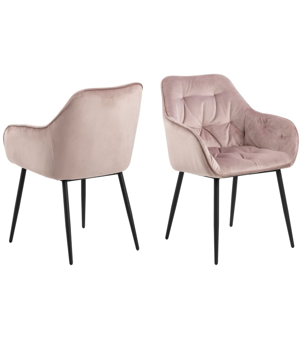 Ajoutez de l'élégance à votre salle à manger avec les chaises en tissu TERI.Ces fauteuils de salle à manger, sont revêtus d'un velours capitonné très doux et reposent sur quatre pieds métalliques, fins et fuselés. Résolument modernes, ils accueilleront vos invités pour longues heures autour de repas conviviaux.S'accordent à la perfection aux salles à manger contemporaines et actuelles. Pour une ambiance homogène et soignée, vous pourrez les associer à une table au piétement métallique noir et au plateau bois. Description technique : Fauteuils de salle à manger en tissu et métalDimensions : L 58 x P 55 x H 83 cmPoids : 7,8 x 2 KgHauteur des pieds : 41 cmHauteur d'assise : 47 cmLargeur d'assise : 41 cmProfondeur d'assise : 40,5 cmHauteur d'accoudoir : 19 cmHauteur d'accoudoir jusqu'au sol : 67 cmLargeur d'accoudoir : 4 cmProfondeur d'accoudoir : 35 cmHauteur de dossier : 37 cmCapacité de poids maximale : 110 KgMatières : tissu aspect velours 100% polyester, métal noir mateColoris : rose poudré, gris, vert, rouge corail, gris brunColis :Vendu par lot de 2. Pieds à assembler.Dimensions du carton : L 59 x P 57,5 x H 60 cm 17,6 Kg...