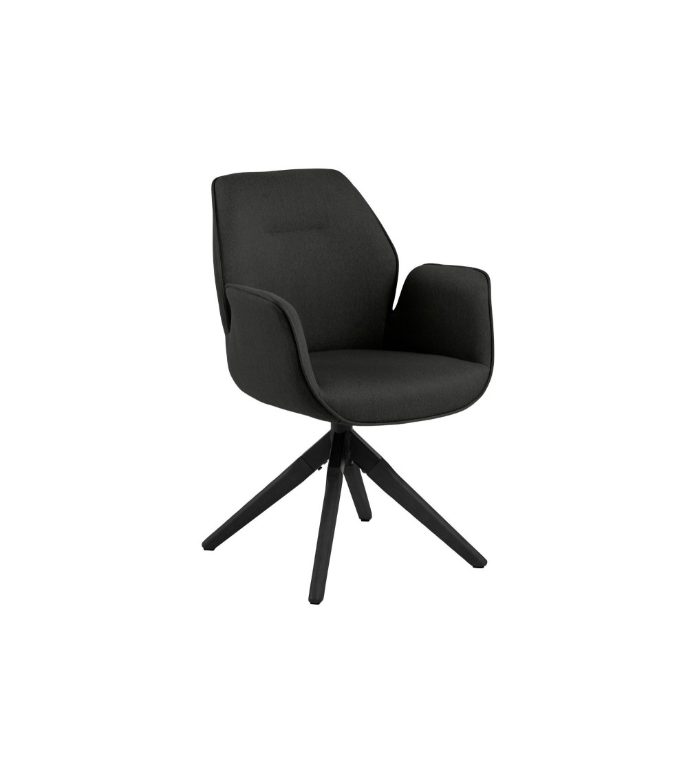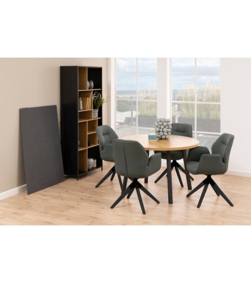 Ajoutez une note de modernité à votre coin bureau ou à votre salle à manger ! Très tendance, le fauteuil RUBEN repose sur un piétement en bois peint en noir, équipé d'un système pivotant et d'un ressort de retour automatique permettant la sortie de table ou de bureau sans effort.L'assise, équipée d'accoudoirs très design, est revêtue d'un tissu polyester gris clair ou gris anthracite. Les fauteuils RUBEN aux piétement noir, s'associent facilement aux décorations industrielles chic et contemporaines. Accordez ces fauteuils avec des meubles en bois clair et métal et le tour est joué pour un style sophistiqué et raffiné.Egalement disponible avec les pieds en chêne clair pour une ambiance scandinave et chaleureuse. Description technique : Chaise de salle à manger avec accoudoirs de style scandinaveDimensions : L 60,5 x P 58,5 x H 91 cmPoids : 12,5 KgHauteur d'assise : 51 cmLargeur d'assise : 61 cmProfondeur d'assise : 44 cmHauteur d'accoudoir : 10 cmHauteur de l'accoudoir par rapport au sol : 70 cmLargeur de l'accoudoir : 2 cmLongueur de l'accoudoir : 37 cmHauteur du dossier : 45 cmPoids maximal supporté : 110 KgHauteur des pieds : 37 cmParticularité : Retour automatiqueColoris : gris et gris anthraciteMatières : revêtement en tissu 100% polyester, bois d'hévéa finition noirColis :Livré en 1 colisDimensions du colis : L 77 x P 62 x H 43 cmPoids du colis : 12,5 Kg...