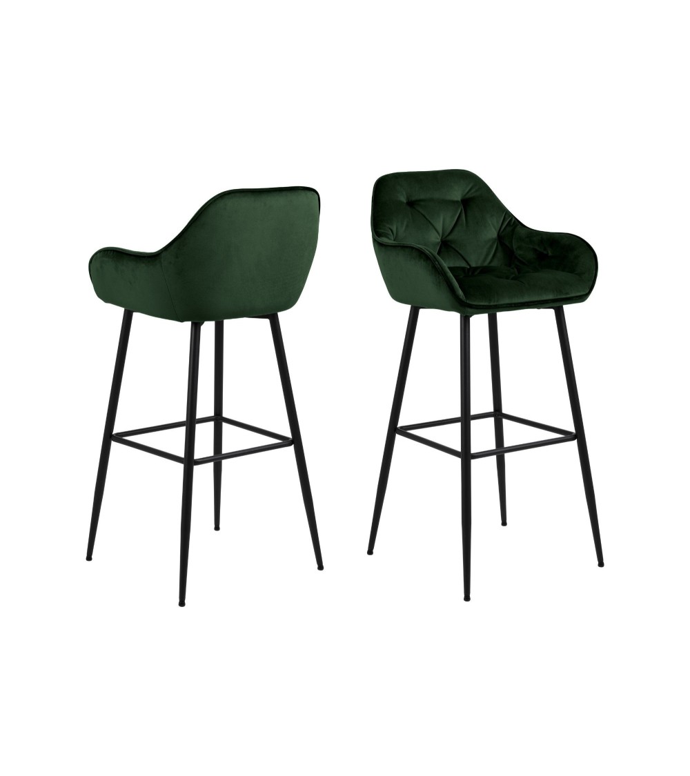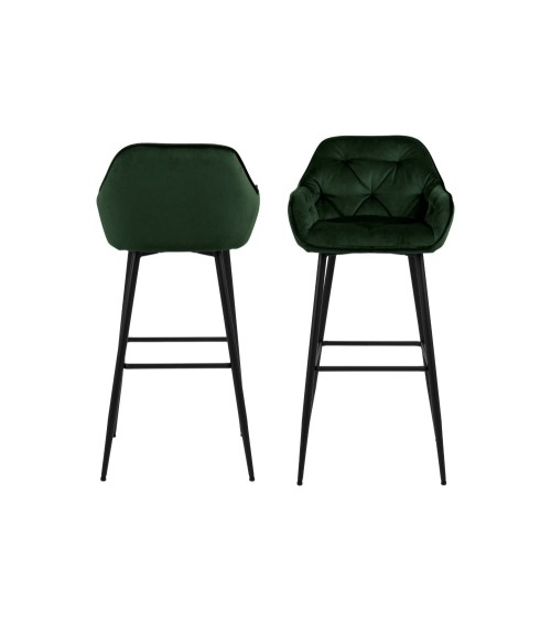Tabouret haut avec accoudoirs en velours et métal (lot de 2)
