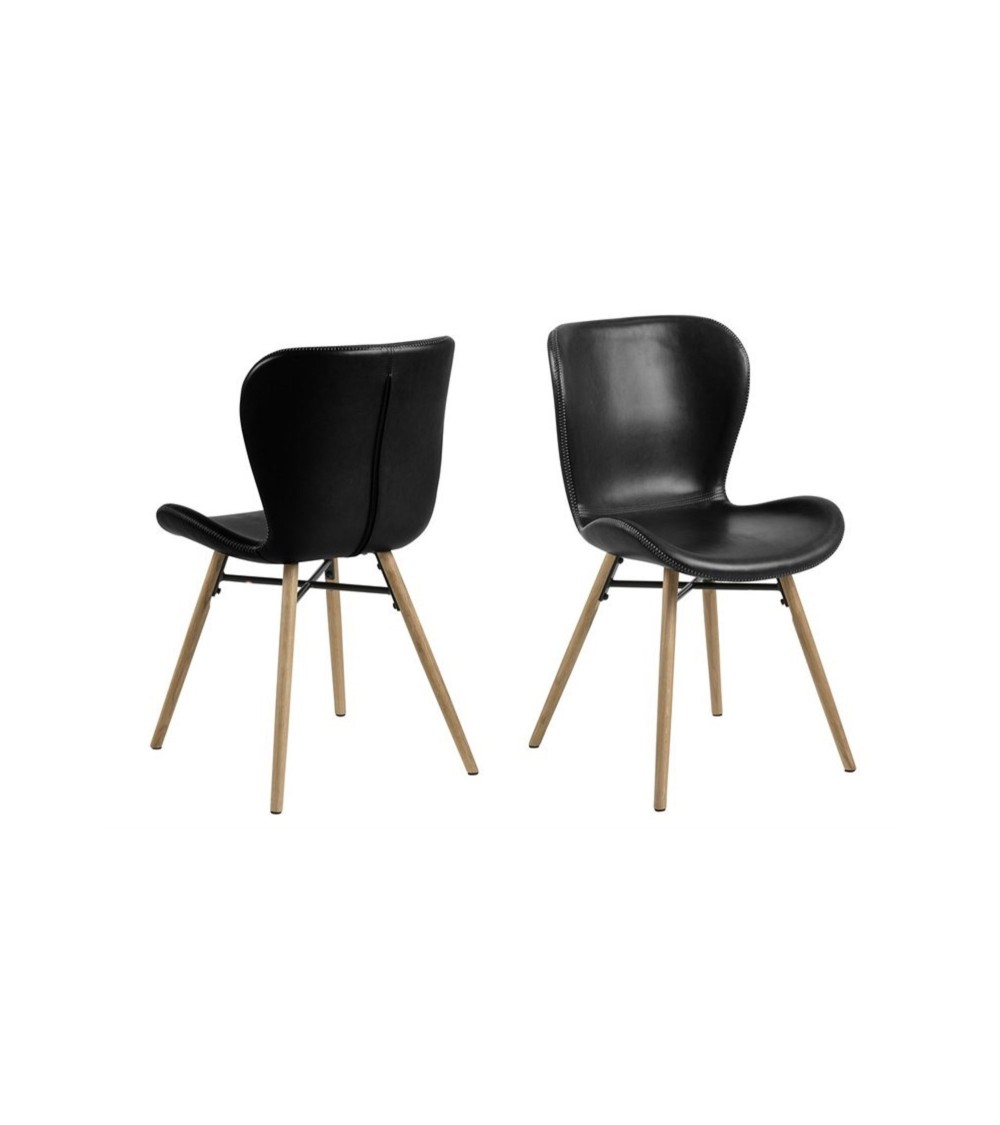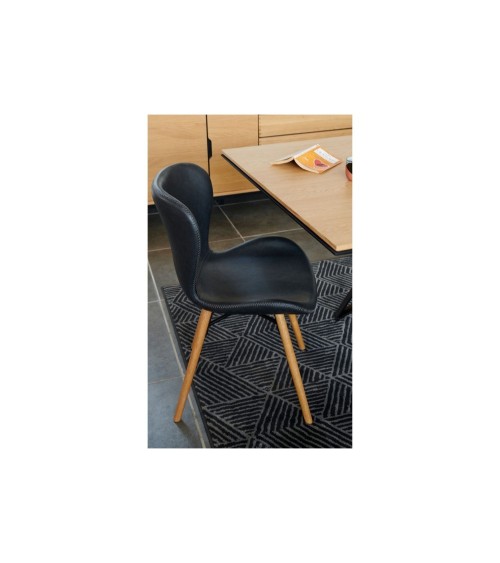Le revêtement simili de la chaise Matilda apporte du style et de la chaleur à votre salle à manger ou bureau. Une chaise bois au look scandinave Associé à son piétement en chêne clair, l'assise simili marron aux surpiqûres couleur camel, donne à la chaise de salle à manger une allure chic et rétro. Au look plus nordique et moderne, l'assise noir aux surpiqûres grises s'harmonisera avec tous types d'intérieurs.La combinaison du bois, du métal et du revêtement simili, en fait une chaise de salle à manger aussi robuste qu'élégante. Toutes les chaises de la gamme Matilda disposent d'une assise ergonomique tout en courbe, particulièrement confortable. Description technique : Chaises vendues par lot de 2 Chaises à assembler soi mêmeOrigine Hors Union Européenne Conçue dans le respect de l'environnement et conforme à la régulation Timber No 995/2010 de l'Union Européenne. Piétement oblique en chêne massif clair et huilé, agrémenté de deux renforts en métal noir Dimensions : Hauteur de l'assise : 47 cm Profondeur de l'assise : 41,5 cm Longueur : 46 cm Poids : 6,15 kg. Matière du revêtement : simili Coloris disponibles : marron (cognac) ou noirRetrouvez aussi sur notre site, les chaises en bois Matilda avec une assise en tissu....