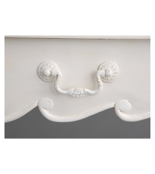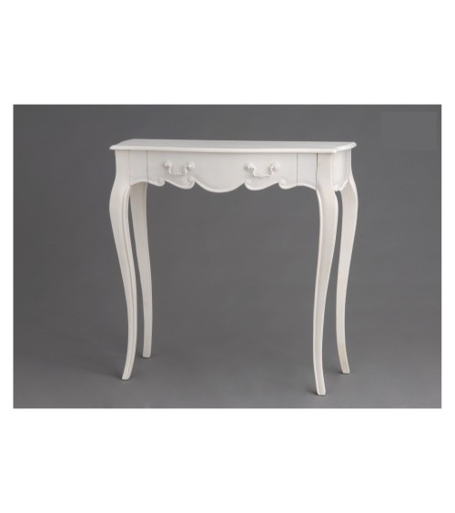 La console Apollonia petit modèle est parfaite pour meubler une entrée ou un salon. Elle vous permettra, grâce à son tiroir, de ranger vos documents ou vos clés. Elle est fabriquée en bois coloris blanc dans un style romantique et raffiné. Description technique : Dimensions : L: 80 x P: 35 x H: 80 cmHauteur extérieur du tiroir : 14 cmLargeur extérieur du tiroir : 49 cmMatières : bois d'acajou et mdfCouleur : blancPoids 12 kg...