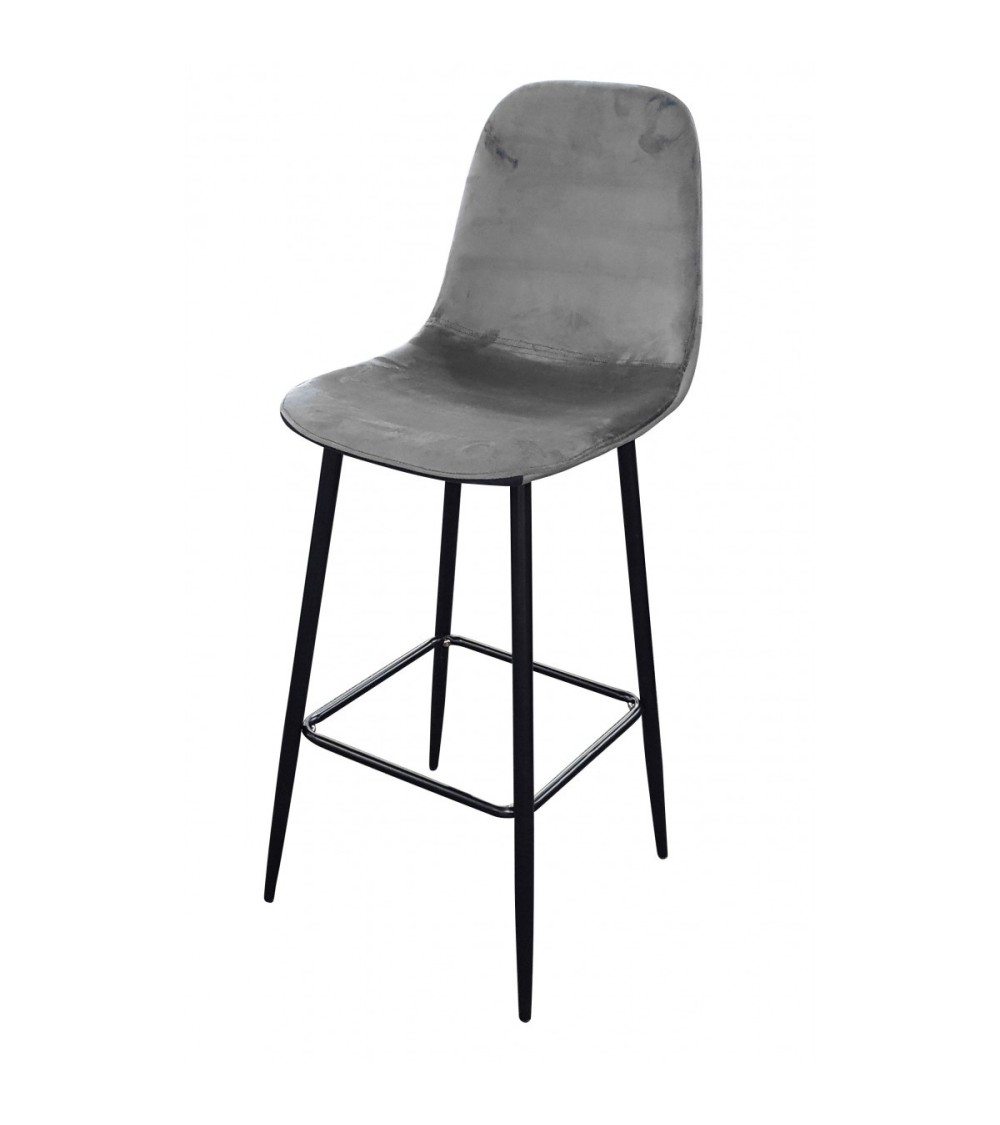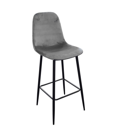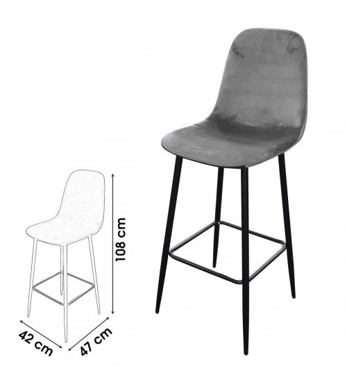 Tabouret de bar en métal noir et assise en tissu velours gris.Dimensions: Longueur 47cm x largeur 42cm x Hauteur 108cm (Hauteur d'assise: 74.5cm)Couleur: Gris et NoirMatière: Métal et Polyester