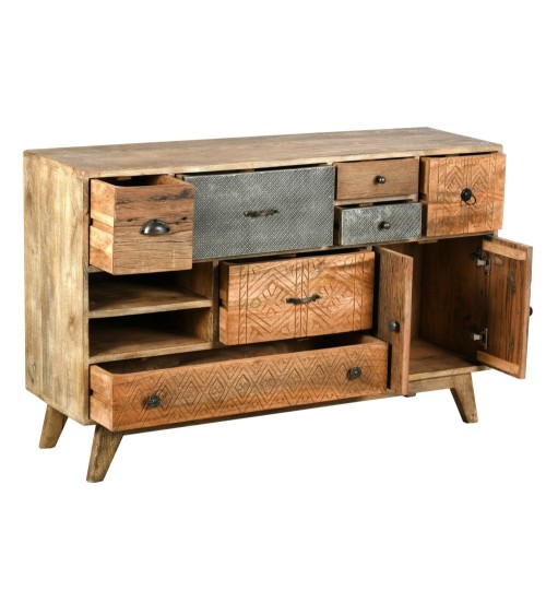 Commode en manguier et métal zouma 120 x 35 x 76 cm