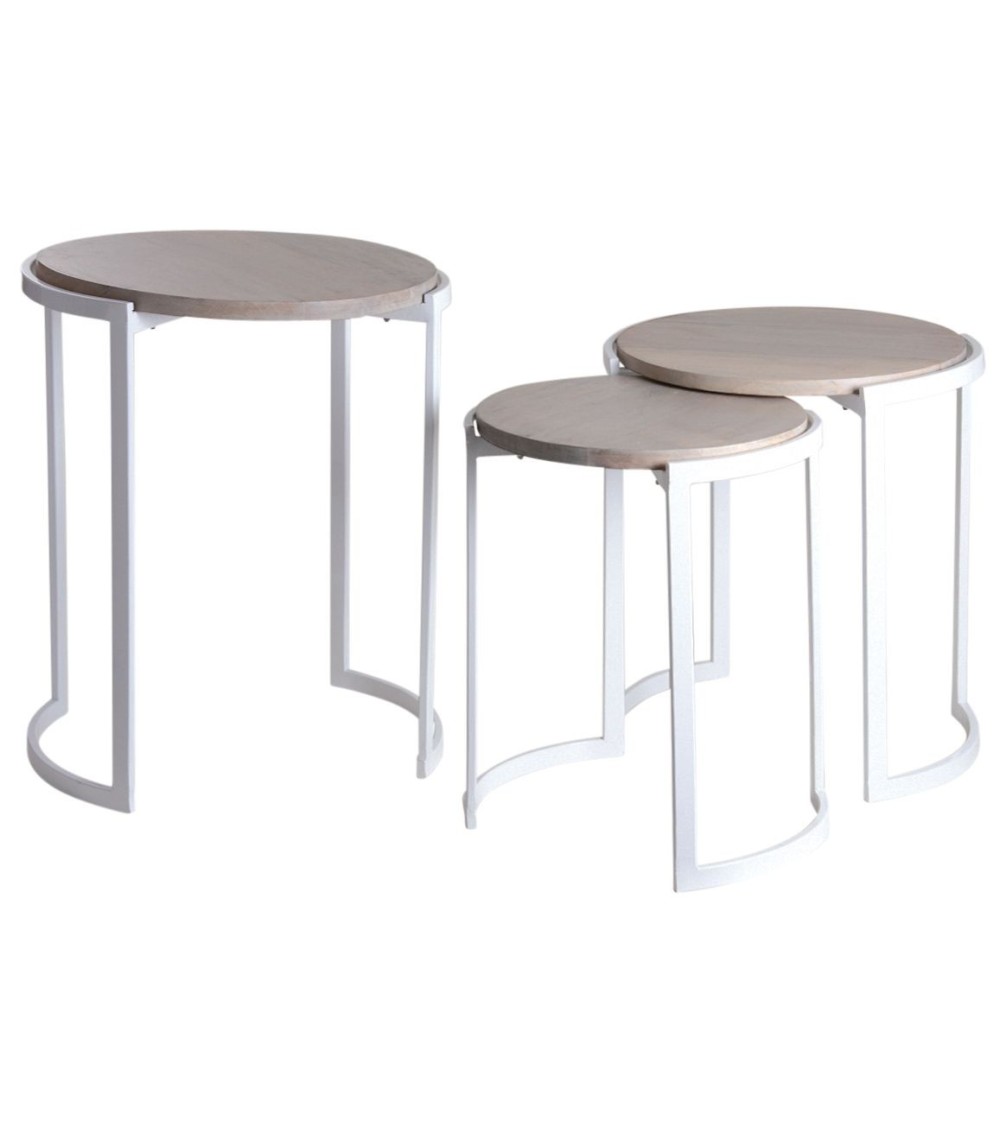 Sellettes rondes en métal et manguier (lot de 3) blanc